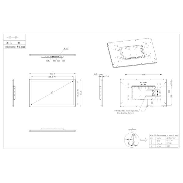 PCAP Touch Monitor Mechanical Dimensions